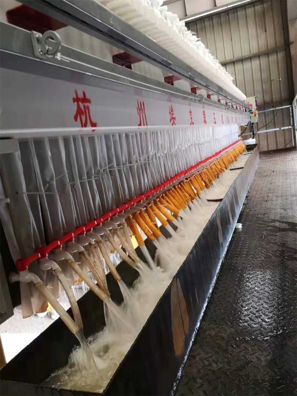 全自動廂式壓濾機與普通廂式壓濾機的不同之處在于多了自動拉板系統,自動接液翻板,自動清洗濾布等系統。使設備操作更加智能化自動化。整機結構設計科學合理,機械強度高、結構穩固、經久耐用并且便于操作和維護。